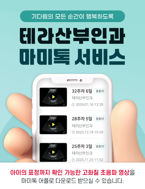 TERRA(대지)와 HERA(여신)을 뜻하는 테라산부인과는 방문하시는 모든 여성이 여신처럼 머물다 가실 수 있는 편안한 곳이 되도록 노력하겠습니다.